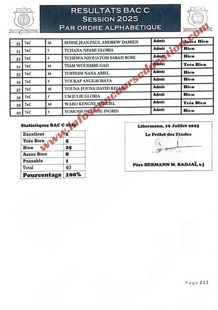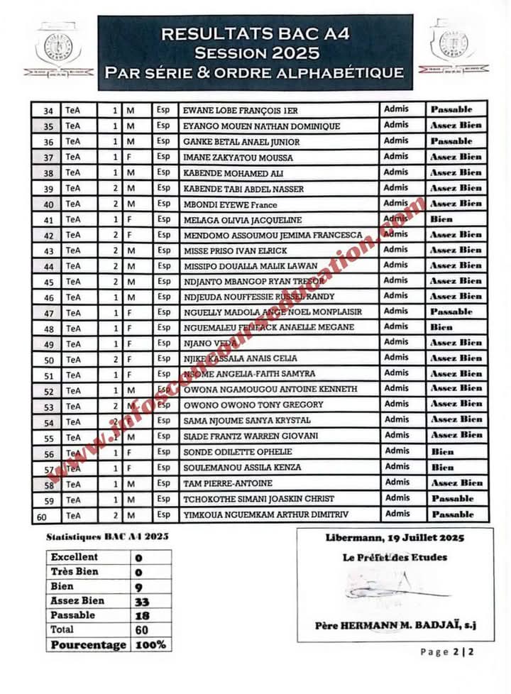 Consultez les résultats au baccalauréat ESG Session 2025 du Collège Libermann