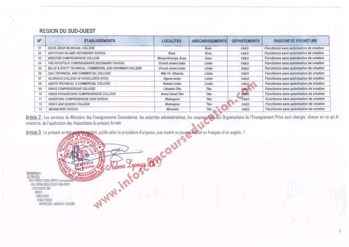 Le Ministère des Enseignements Secondaires (MINESEC) a procédé à la fermeture de plusieurs établissements scolaires et centres de formation privés à travers le Cameroun. Cette décision a été rendue publique via un arrêté signé le 29 juillet 2025, et entre en vigueur dès la rentrée scolaire 2025/2026.