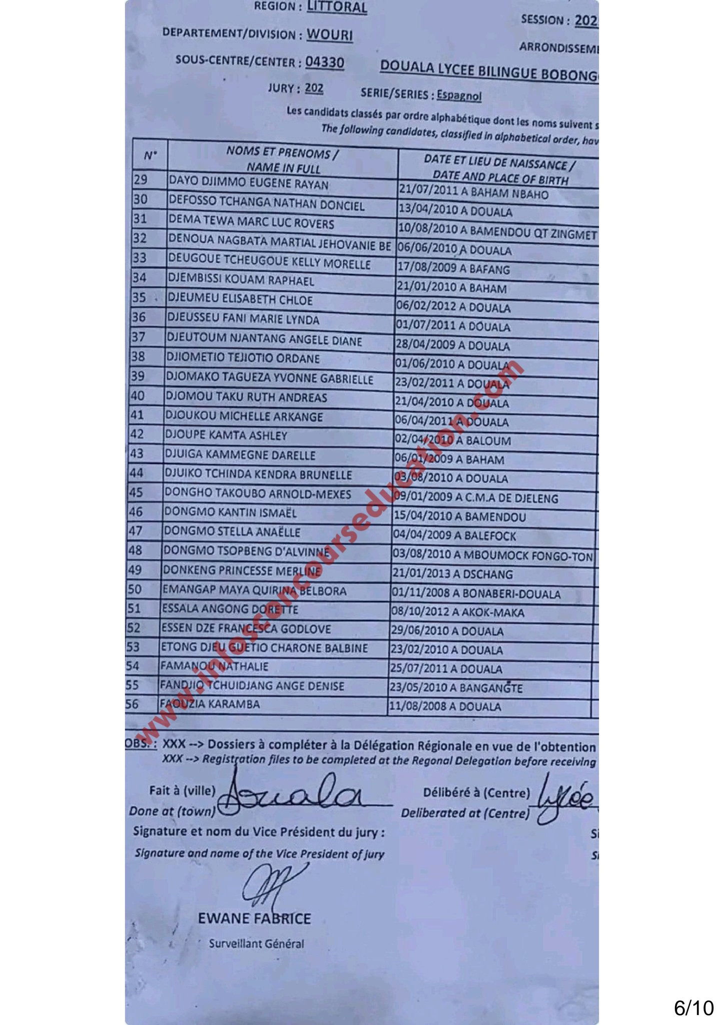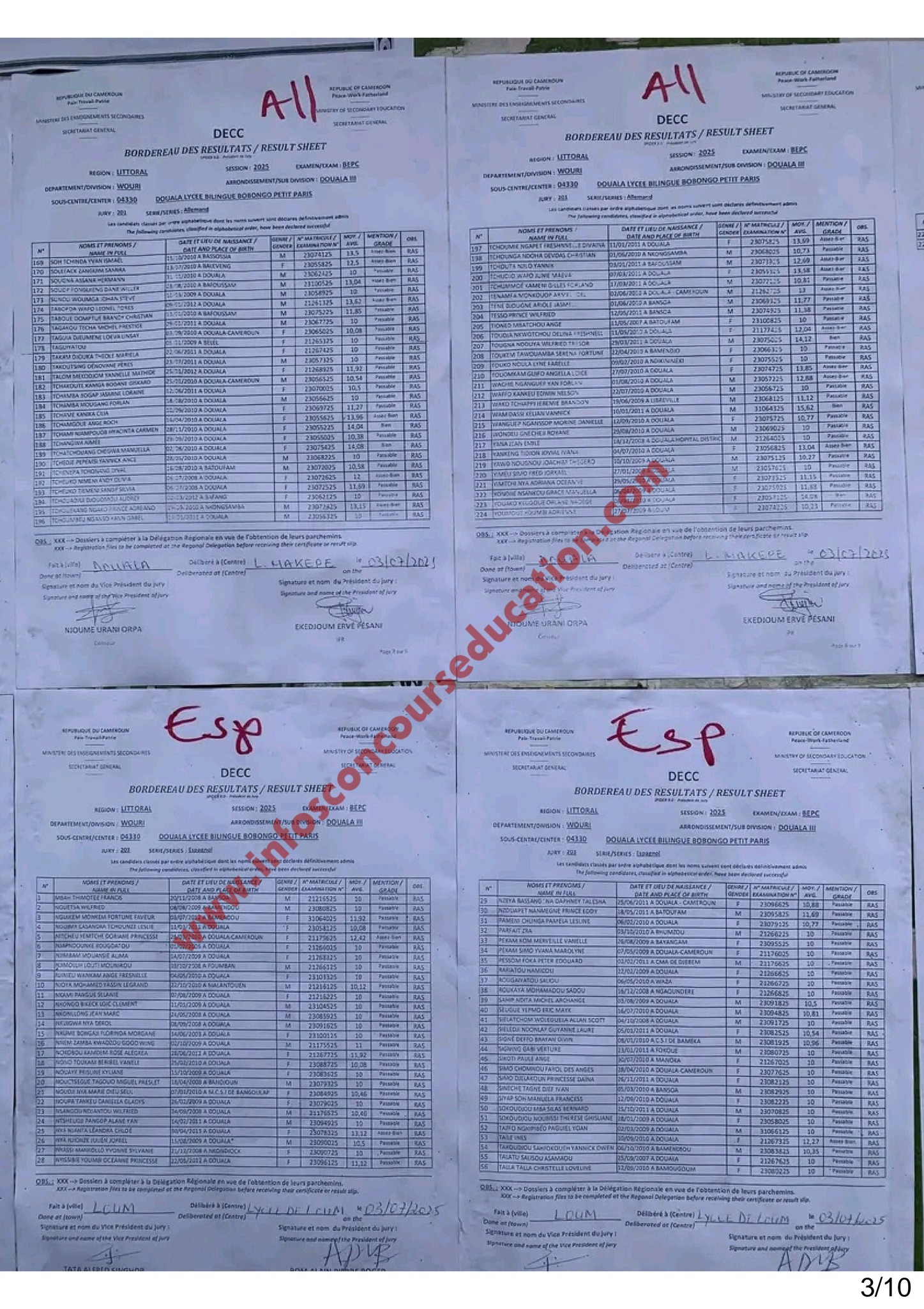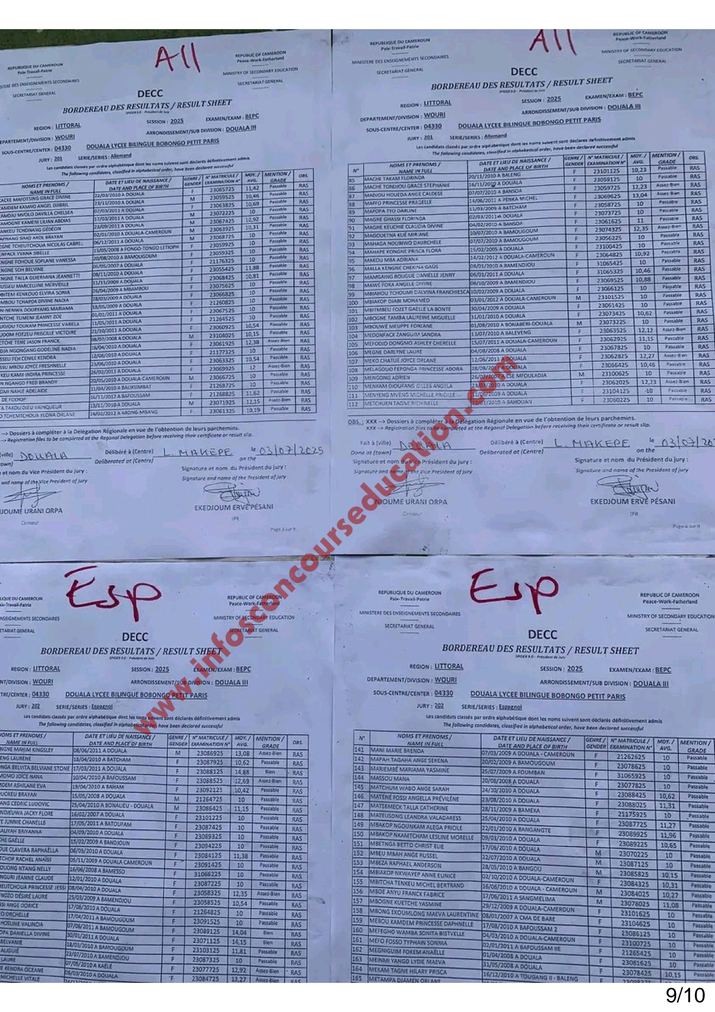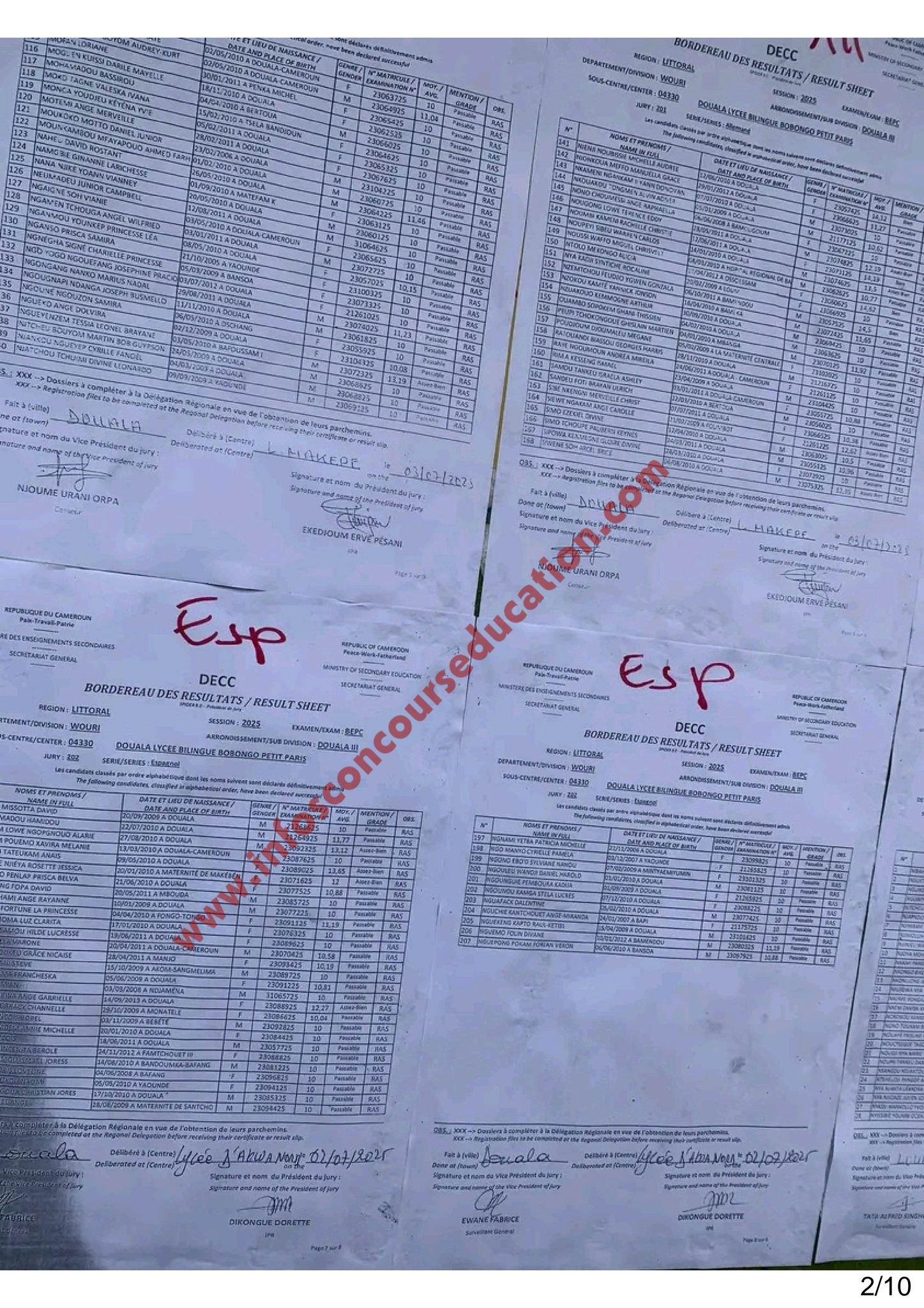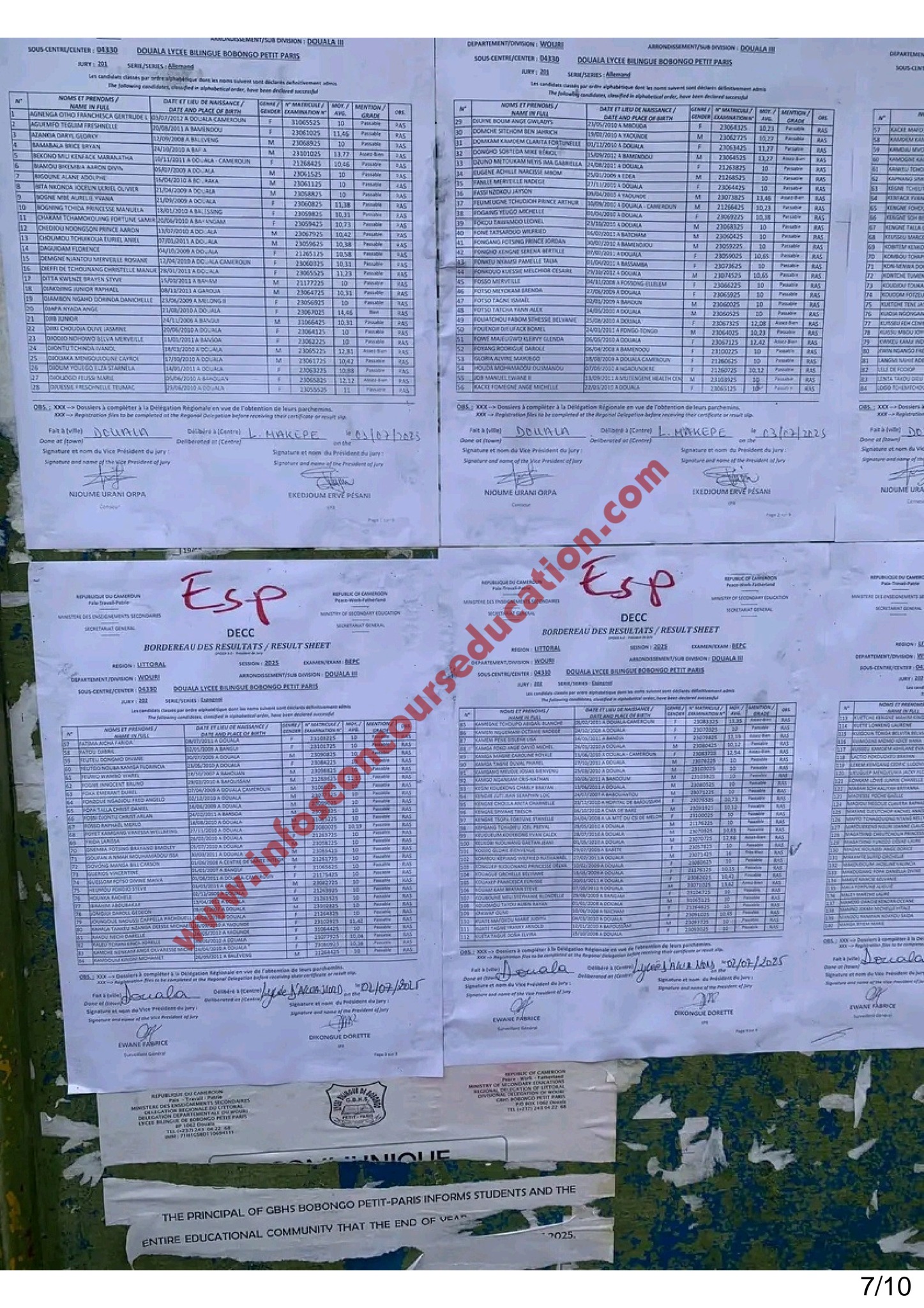 Résultats BEPC 2025 Lycée bilingue de BOBONGO petit paris